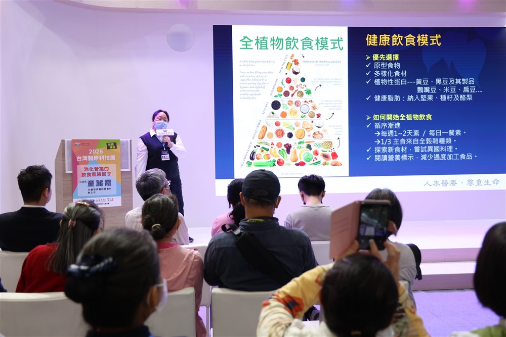 花蓮慈濟醫院營養科副主任童麗霞教導民眾如何預防消化道癌症。攝影/黃銘村
