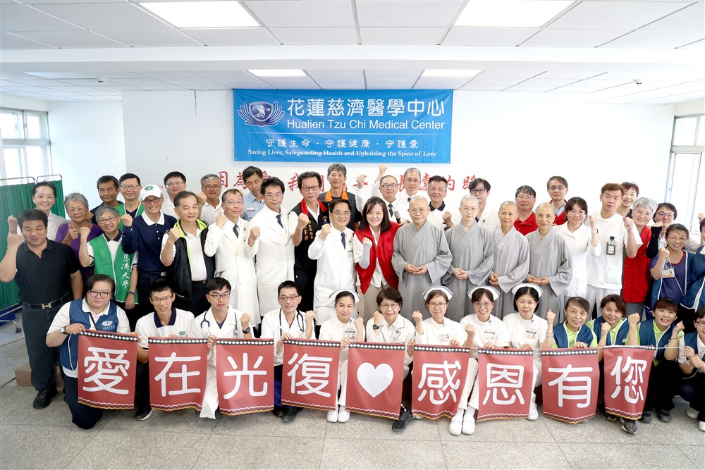 交接感恩會上,林欣榮院長致贈感恩狀,感謝衛福部、花蓮縣衛生局、光復鄉衛生所、健保署東區業務組、慈濟基金會;慷慨提供場地設置醫療站的臺糖花蓮觀光糖廠、臺灣中油花蓮光復加油站和光復鄉親許恒瑞先生;還有協助醫療隊交通運輸的臺灣鐵路局、架設網路的遠傳電信、無人機送藥的極現科技公司。最重要的是當地居民與各地志工的信任,讓慈濟醫療站發揮良能,一路守護民眾和光復鄉邁向康復。