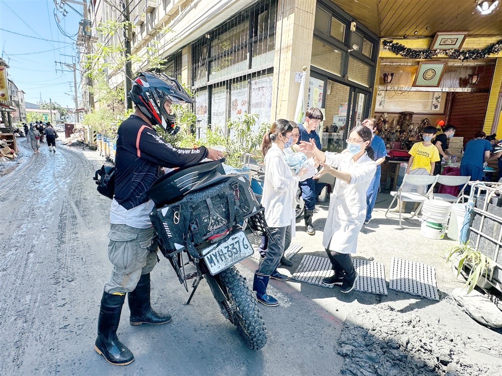 帶著「受傷請找我」掛牌的行動傷口照護小組,穿梭災區守護居民和志工,機動而可靠的背影如同災區「行走的天使」。