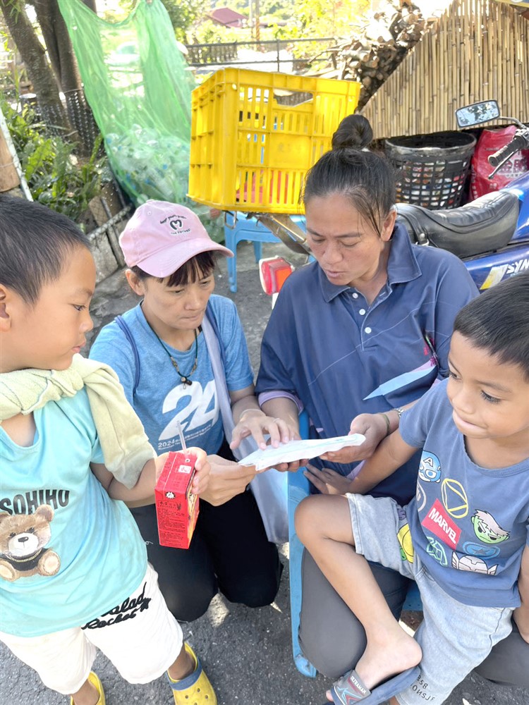 九月二十七日,王愛倫護理師(右一)帶著藥品和物資與弟弟徒步上山,逐戶關心村民健康狀況和醫療需求,並細心衛教。圖/關山慈院提供