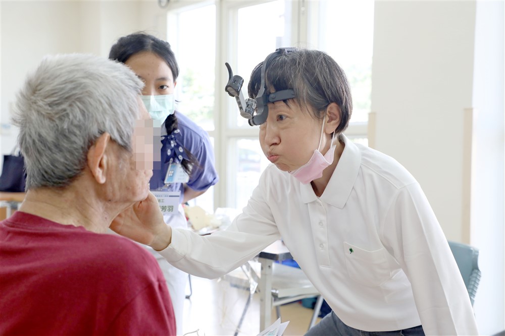 黃正輝醫師發揮耳鼻喉科專業,為院民處理耳垢、耳膜破損與慢性中耳炎等問題,許多長者當下就聽得清楚,露出驚喜笑容。「很多長者以為聽不見是退化,其實只是沒被好好看見。」