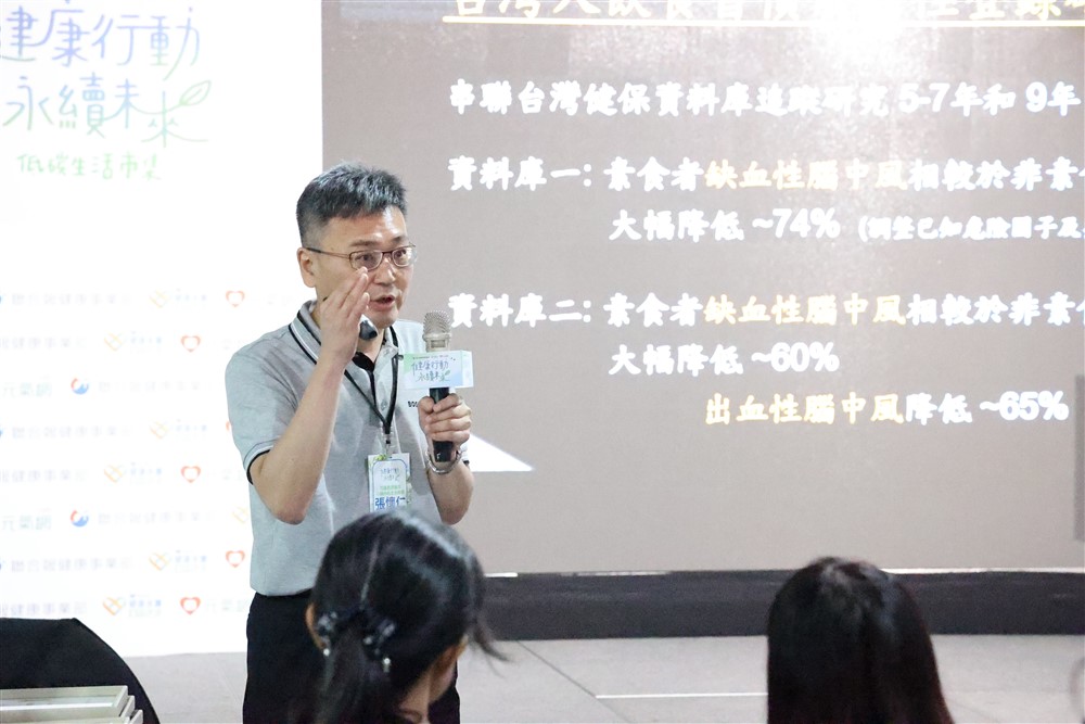 花蓮慈院內科部副主任暨心臟內科主治醫師張懷仁,在二○二五健康永續暨蔬食市集帶來「藥食同源、全植物飲食的科學實踐」專題演講。