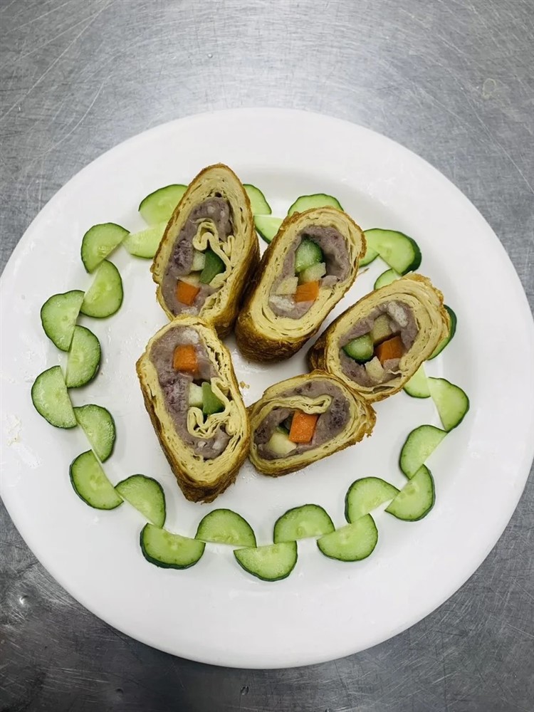 花蓮慈濟醫院營養科團隊設計「彩蔬蘋果芋泥捲」的初衷,是希望能幫助○四○三大地震後的花蓮農友,選用吉安鄉南華村盛產的芋頭降低油脂含量,保留芋頭與餡料的原始香氣和鬆軟口感,減少過多熱量攝取,也能增加飽足感,讓這道料理兼顧健康與美味,並且減少動物性廢氣的排放,傳遞友善環境的理念。推動素食營養與減碳觀念,也希望喚起民眾在飲食的健康意識和對花蓮農業的關懷。