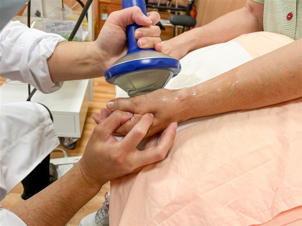 許女士固定回診做體外震波治療,改善手部疼痛。