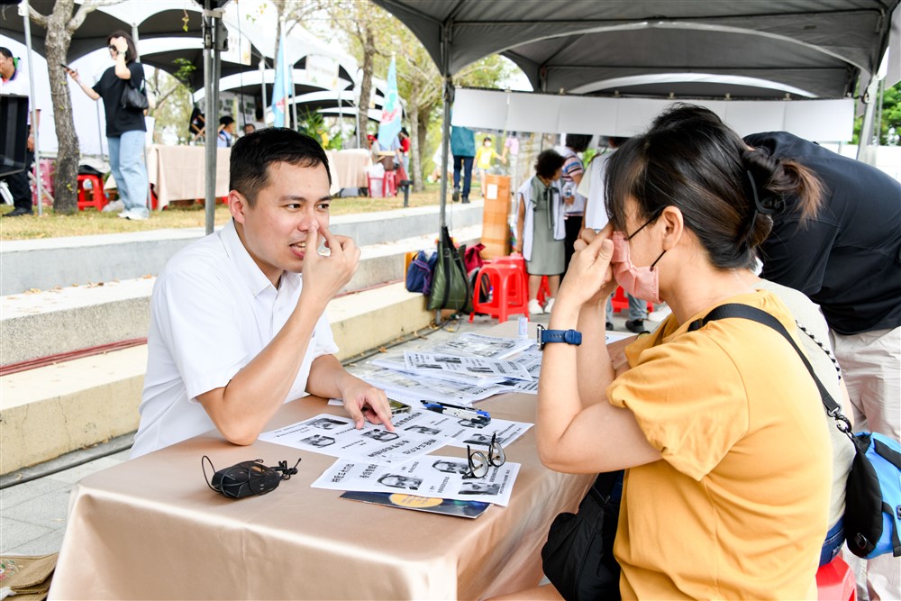 穴位體驗區以「日常穴位保健」為主題,由中醫部住院醫師及代訓蔡旻錡中醫師,教導民眾簡易的頭痛、眼睛疲勞與腸胃不適等常見穴位按摩法。現場互動熱烈。