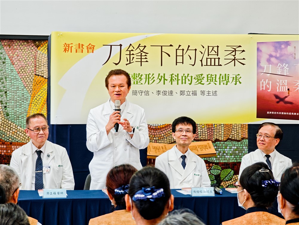 慈濟醫療法人林俊龍執行長表示,「慈濟基金會明年即將迎來六十周年,花蓮慈濟醫院也即將迎來四十周年,當年招募醫師非常困難,整形外科更為稀缺,今天看到有好多位服務超過三十年的醫師,包括簡守信院長、陳培榕副院長、李俊達主任、鄭立福醫師等,心中無比感恩。」早年東部許多民眾有吸菸、喝酒、嚼檳榔的習慣,因此口腔癌及頭頸癌的發生率極高,端賴耳鼻喉科團隊摘除腫瘤,整形外科團隊接手後續重建,「在這兩科緊密合作下,我們的頭頸癌病人五年存活率在臺灣、甚至世界上都名列前茅。而《刀鋒下的溫柔》這本書,珍貴地記錄整形外科這段艱辛的專業堅持與傳承,更是慈濟醫療志業的光榮。」